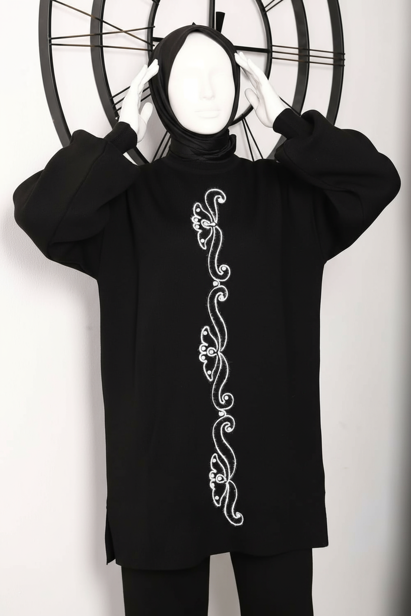 Winter Black Floral Printed Long Sleeves 2 PCs Co-Ord Set