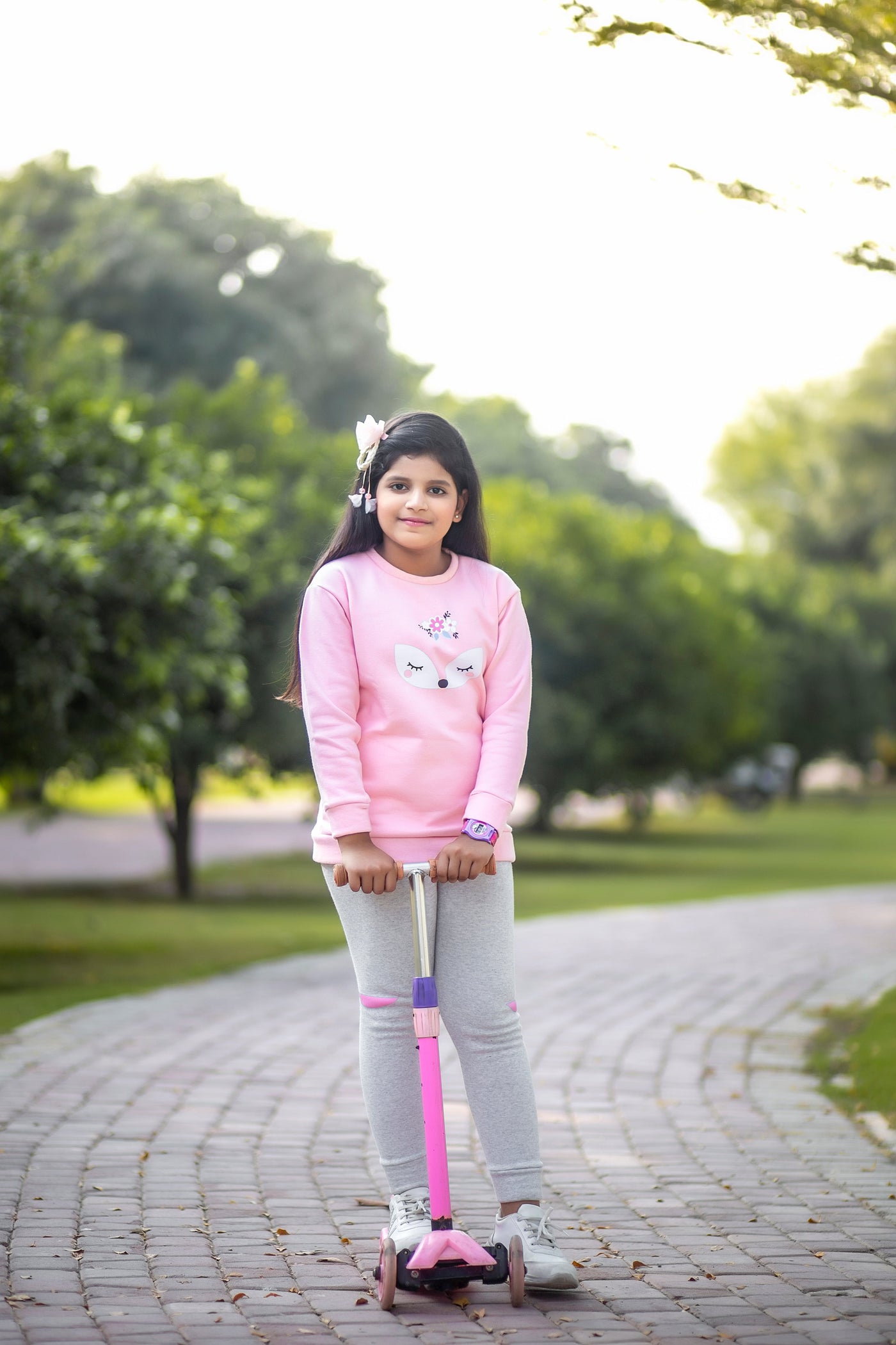 Fleece Fabric Pink Fox Printed Kids Winter Suit ( Each )