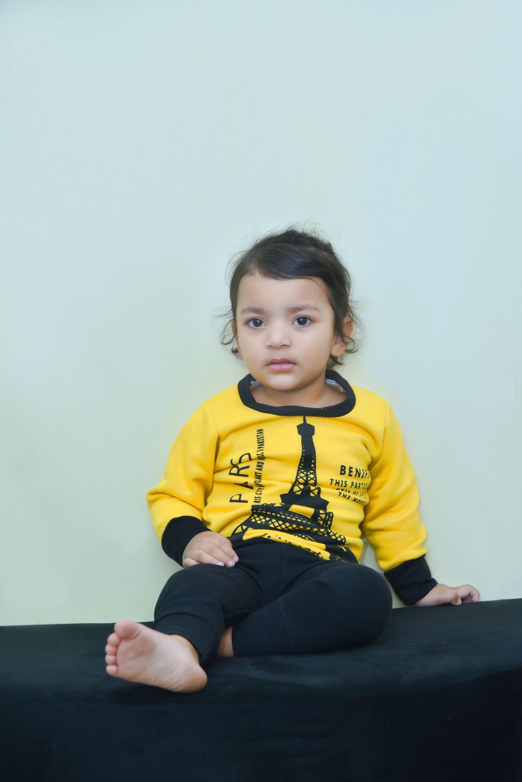Fleece Fabric Yellow Paris Printed Suit ( Each ) - 1-2-years